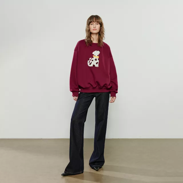 Step into cooler days with a hoodie that blends warmth, comfort, and playful charm. This winter crewneck top features an adorable puppy applique embroidery that brings a soft, age-reducing look while keeping your style polished for everyday wear. Designed with a relaxed, loose fit, it drapes naturally on the body for an easy, confident feel whether you’re at the office, running errands, or enjoying a casual weekend out.