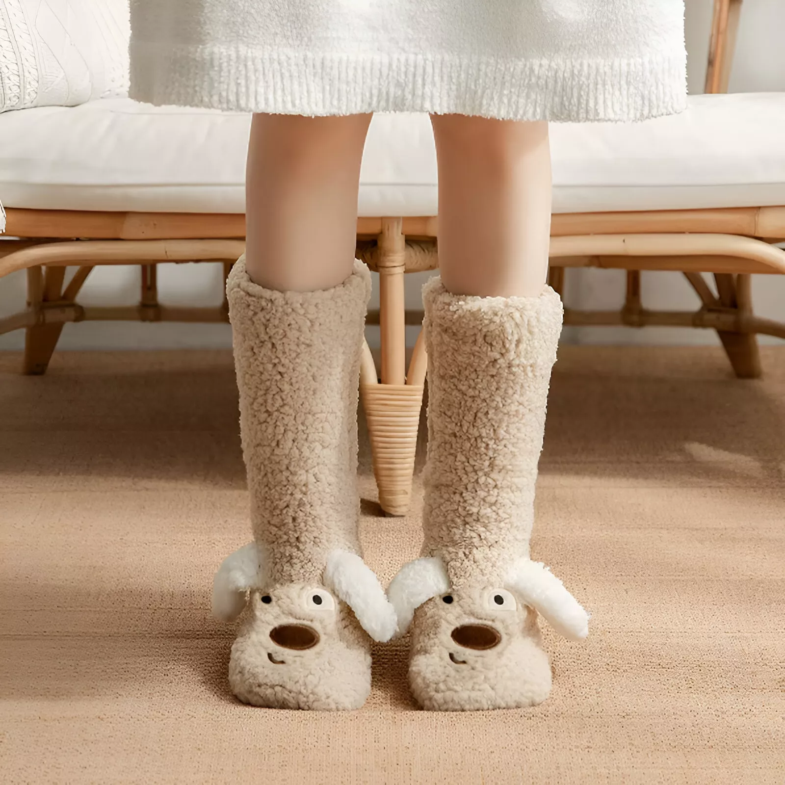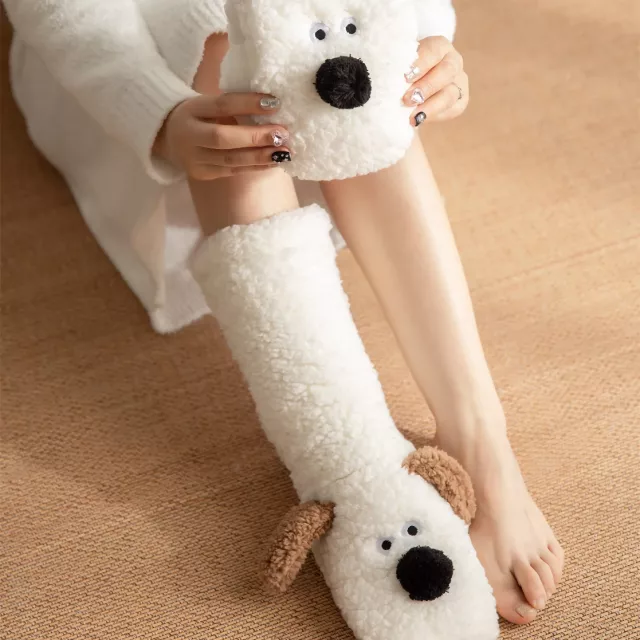 What truly sets these socks apart is the perfect balance of warmth, softness, and safety. Made from a plush cotton and polyester blend, they feel like a gentle hug around your feet. The thick, fluffy knit helps trap heat, making them ideal for cold weather and chilly floors. The 3D cartoon dog detail adds personality, while the non-slip grip on the soles gives you confidence when walking on tile, wood, or laminate surfaces.