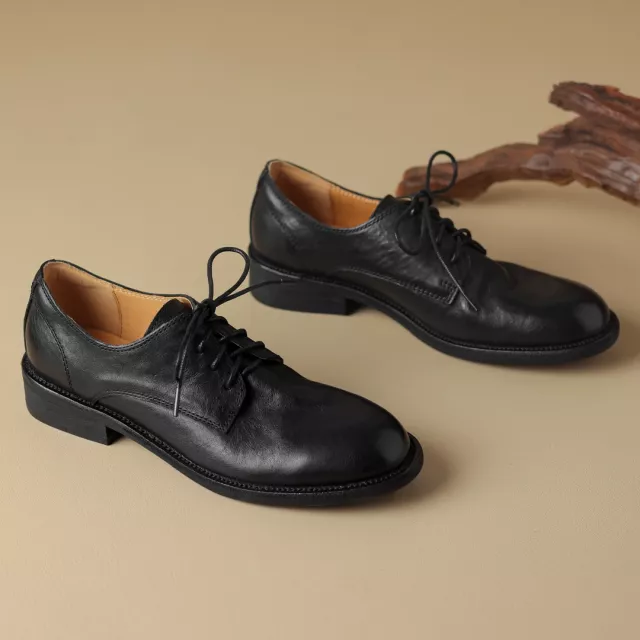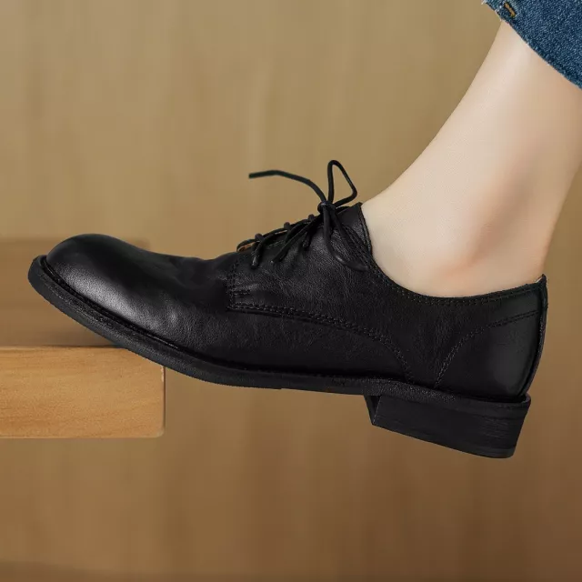 Step into classic elegance with these women’s genuine leather Oxford flats. Inspired by retro British style, these lace-up shoes are crafted from premium cow leather for a refined look that never goes out of fashion. With their round toe design and subtle 1.2-inch (3 cm) heel, they bring together sophistication and comfort, making them a perfect match for any occasion.