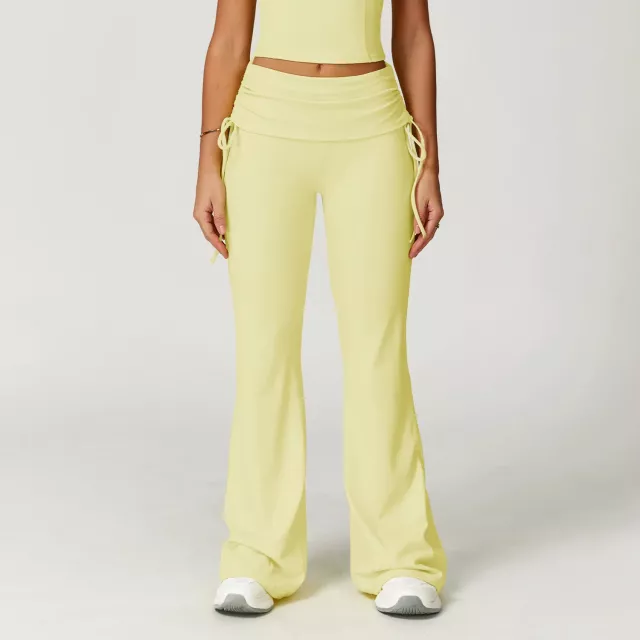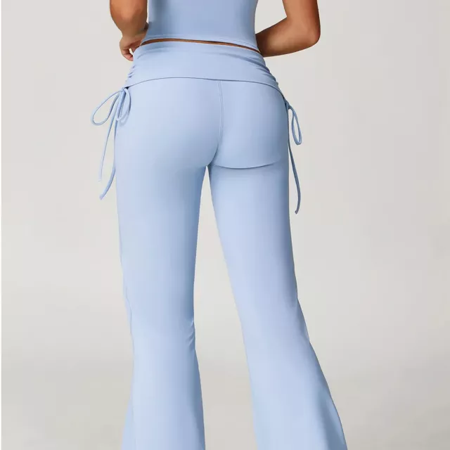 Women’s High Waist Flared Yoga Pants with Adjustable Waist Tie