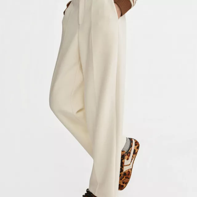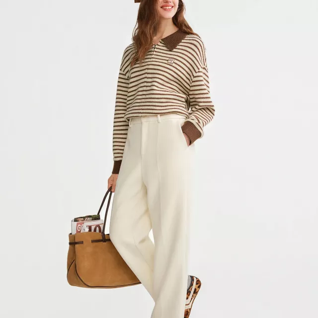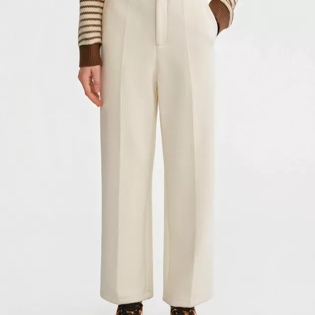 Meet the straight-leg pants designed to carry you through chilly mornings, long workdays, and cozy evenings out. These high-waist wool blend pants offer a smooth, structured look with just enough softness to keep you comfortable all day. The crisp white color brings a fresh, elevated feel to your winter wardrobe, while the clean straight cut gives you a timeless silhouette that never goes out of style.