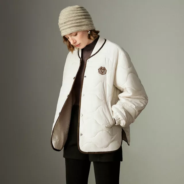 What makes this jacket stand out is its balance of comfort and style. It keeps you warm while still looking neat and structured. The varsity design adds a youthful, fashion-forward touch, while the clean button-front and smooth fabric make it perfect for more formal outfits. The detailed tatting craft gives the jacket a refined finish, setting it apart from basic winter coats.