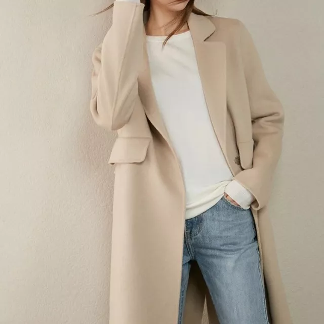 This long, double-sided wool coat is designed for women who value warmth, structure, and effortless style. Made from 100% premium wool, it delivers natural insulation without feeling bulky. The silhouette is clean and refined, with a wide-waisted shape that flatters your figure while allowing room for layers underneath. Reaching over 26 inches in length, it offers full coverage against cold winds and low temperatures, making it a reliable choice for winter days in the city or at work.
