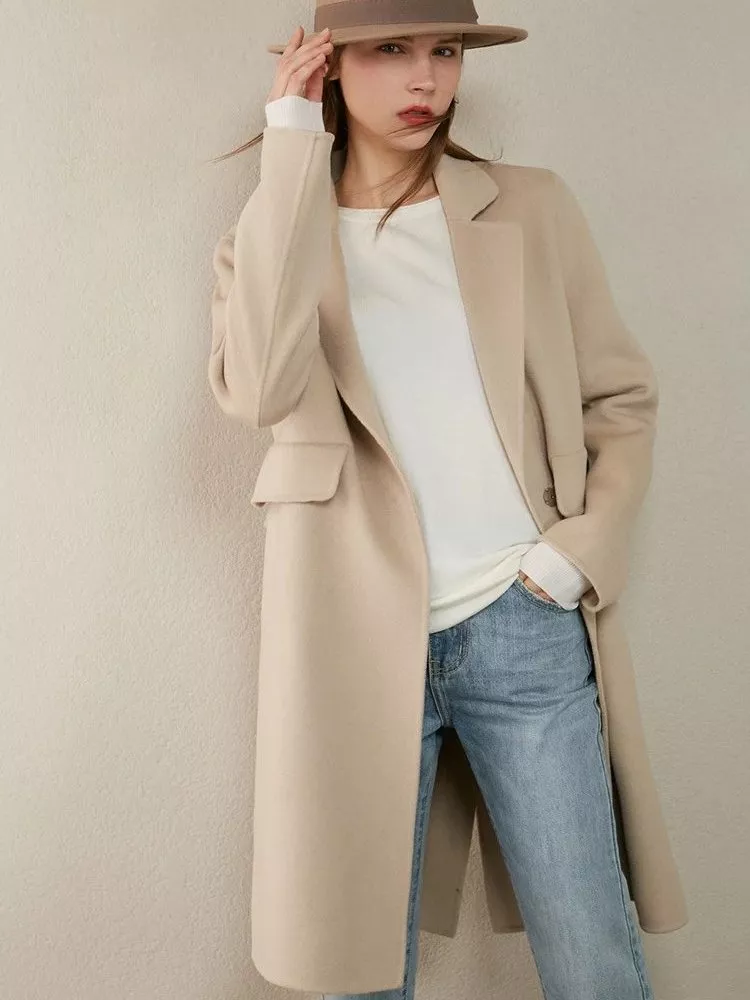 Unlike bulky winter jackets, this coat offers warmth with a refined, office-ready look. The dual-sided wool construction not only improves durability but also enhances comfort and shape. The wide-waisted fit and clean lines give it a high-end feel, helping you stand out with subtle elegance instead of loud designs. It is a perfect balance of function and fashion.