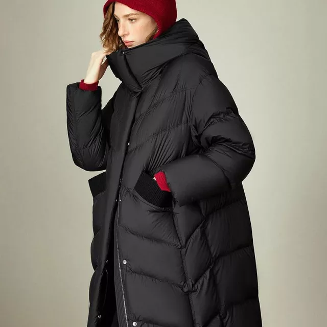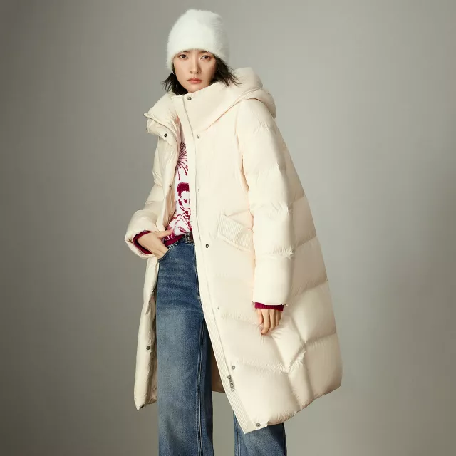 This jacket is filled with 90% premium white duck down, offering exceptional warmth without bulky weight. The thick insulation keeps heat locked in even on freezing days, while the loose-fit design allows easy layering over sweaters, blazers, or hoodies. Its extra-long length adds full-body coverage, helping block cold wind from top to bottom.