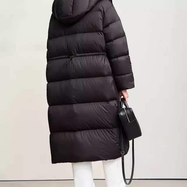 Step into winter feeling confident, warm, and beautifully put together. This long hooded down coat is crafted for women who want dependable comfort without giving up style. Filled with 85% white duck down and designed with a sleek straight silhouette, it delivers the perfect blend of insulation, lightness, and elegance. Whether you’re commuting to work, walking through the city, or heading out for a casual weekend, this coat brings reliable warmth and a polished look for every cold day.