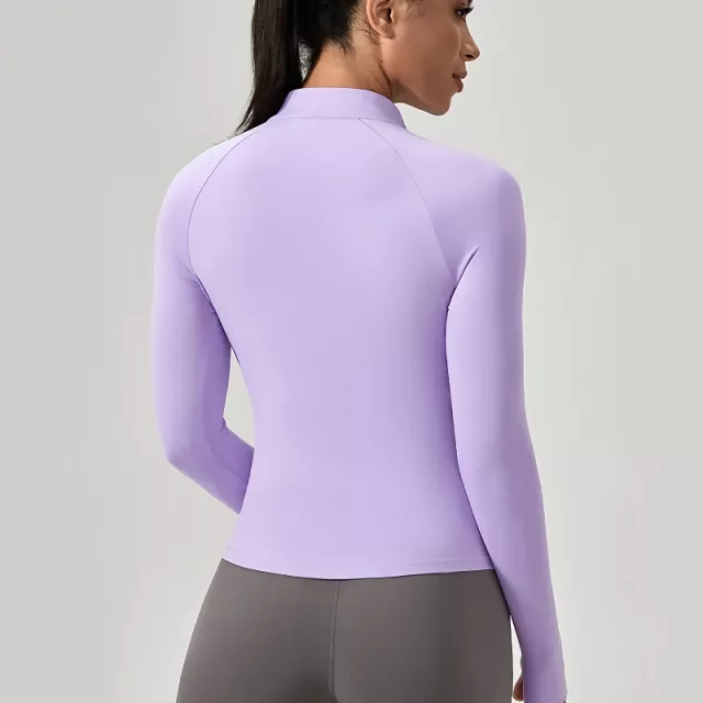 Unlike ordinary sports shirts, this long sleeve top combines a sleek, solid-color design with high-performance features that keep you looking polished while performing your best. Available in versatile colors—black, green, brown, and purple—it’s easy to pair with your favorite leggings or shorts. Its tailored fit offers a flattering silhouette without sacrificing comfort, making it an essential piece in any active wardrobe.