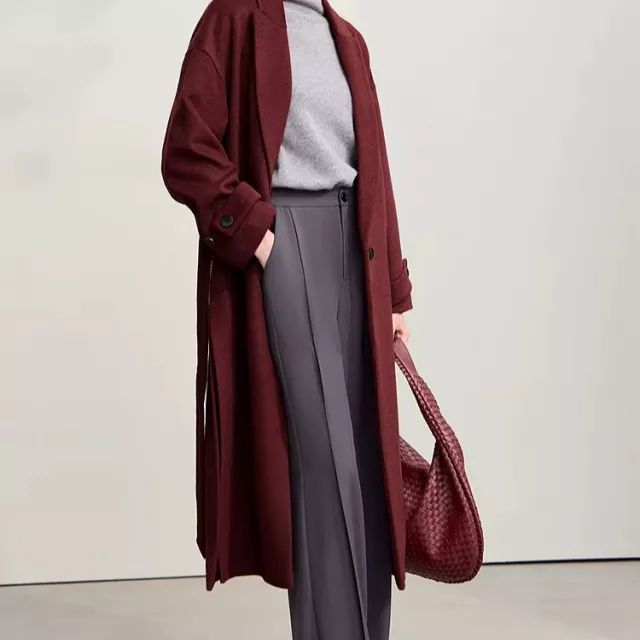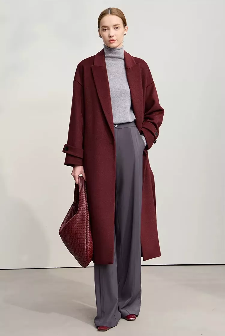 Unlike ordinary winter layers, this coat blends modern comfort with classic tailoring. Its drop-shoulder sleeves create a contemporary silhouette, while the long length adds an elegant touch that feels sophisticated yet easy to wear. The smooth woolen texture offers both warmth and refinement, making this coat a standout piece for the season. Its solid color and minimalistic style allow endless pairing options—dress it up for meetings or down for casual days, all while staying warm and stylish.