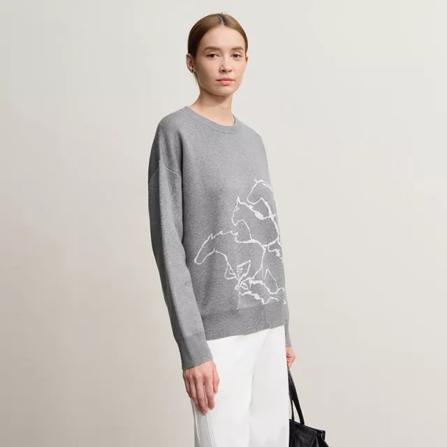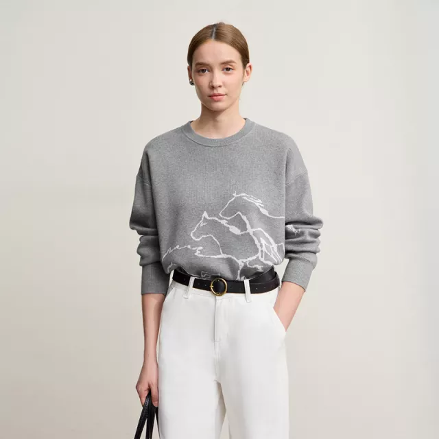 The subtle animal jacquard pattern adds character without being loud, making it perfect for office settings, casual meetings, or laid-back weekends. The classic O-neck design creates a clean neckline that layers beautifully under coats, blazers, or scarves.