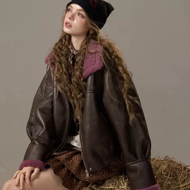 This jacket stands out with its bold mix of textures and colors. The smooth leather-look finish paired with soft faux fur panels creates a rich contrast that turns a simple outfit into a statement. The relaxed silhouette gives you freedom to move and an effortless street-style vibe, while the plaid pattern adds timeless charm you can wear season after season.
