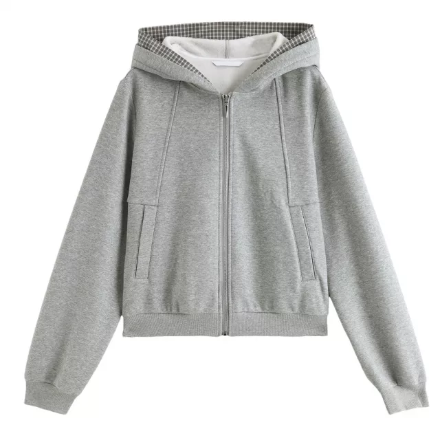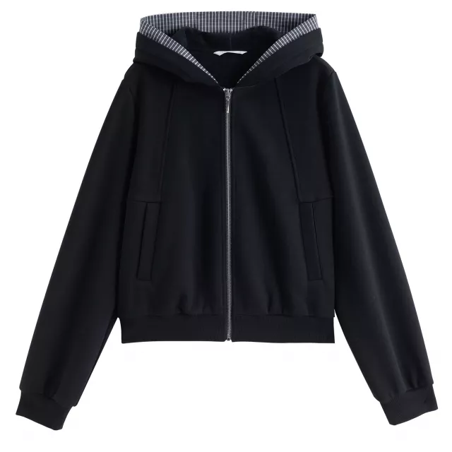 Meet your new cold-weather favorite: a cozy velvet contrast zip-up hoodie designed for comfort, warmth, and everyday style. This piece blends a timeless plaid stitching look with soft velvet panels for a fresh, modern feel. The straight cut and relaxed fit make it easy to layer over your favorite tees, sweaters, or long sleeves without feeling bulky.