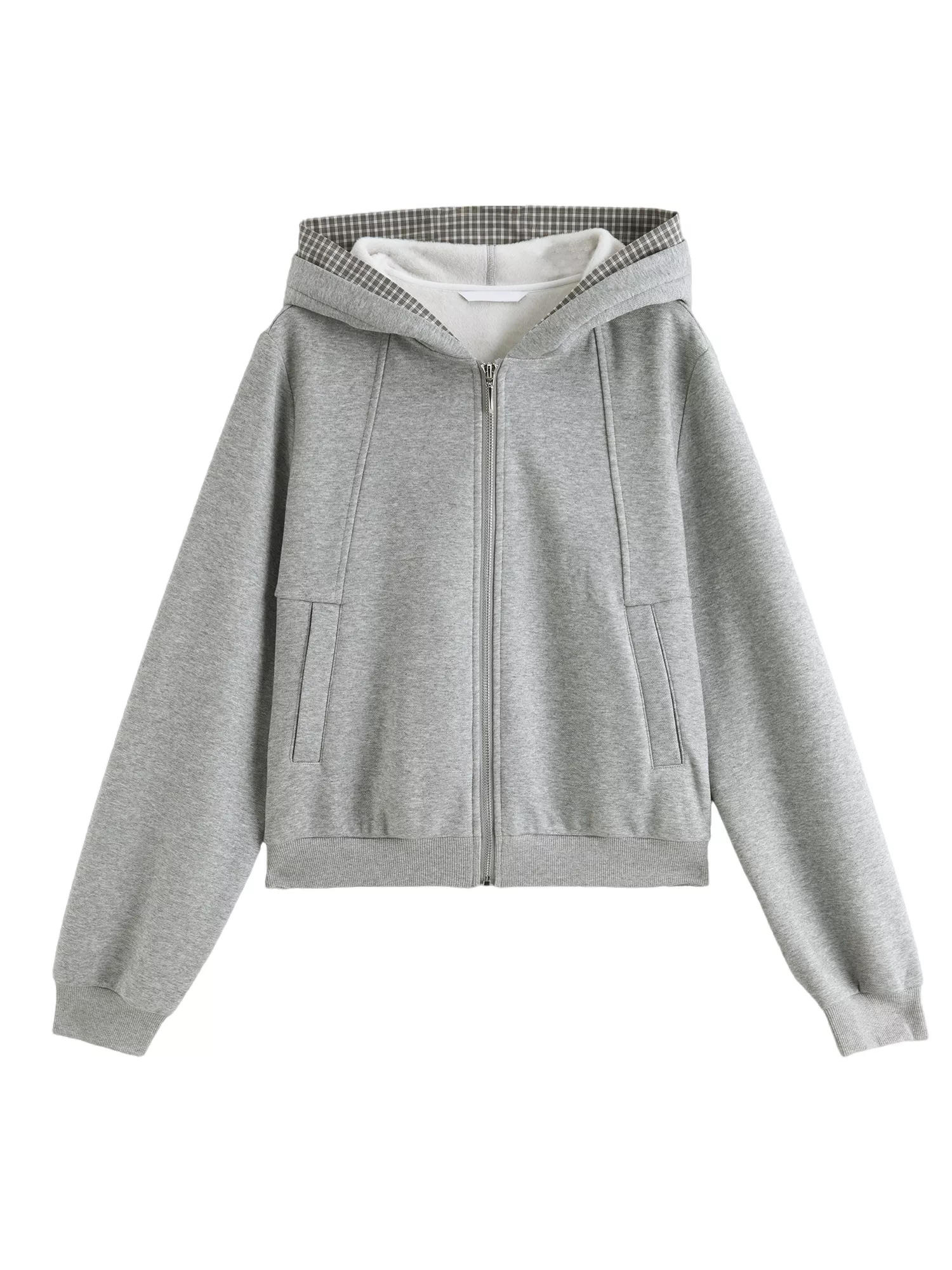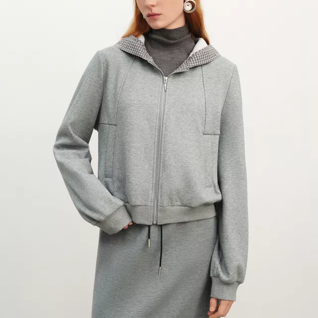 Women’s Plaid Stitch Velvet Zip-Up Hoodie Jacket for Winter