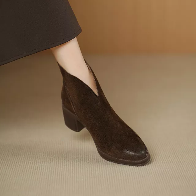 Crafted from premium cow suede, the upper and shaft offer a soft, luxurious feel that adds elegance to every step. The genuine leather lining and sheepskin insole provide superior warmth and comfort, making them ideal for cooler seasons. The TPR outsole delivers reliable traction, keeping you steady on both city streets and rustic paths.