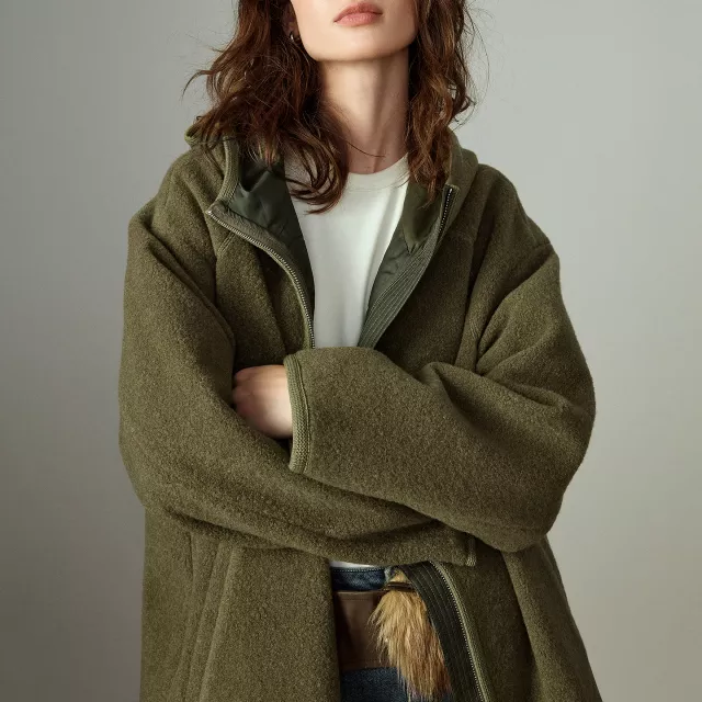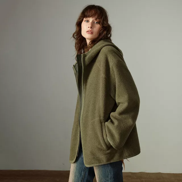 With a full-length zipper and button details, it’s easy to wear open for a casual look or fully closed when the cold wind hits. The hood adds extra protection on chilly, breezy days, making it both practical and fashionable.