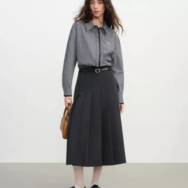 Bring classic charm into your everyday wardrobe with this retro-inspired pleated A-line midi skirt. Designed to flatter and flow, it blends preppy elegance with a youthful edge, making it perfect for office wear and casual outings. The structured pleats create a graceful flare, while the A-line cut skims your shape without clinging. Finished with a practical front pocket, this skirt is as functional as it is stylish.