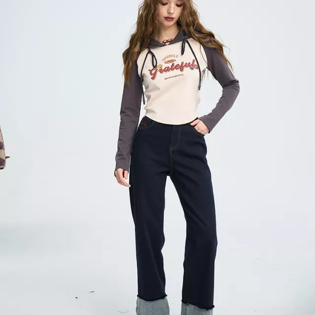 Women’s Retro Wide-Leg Straight Jeans with Patch Detail