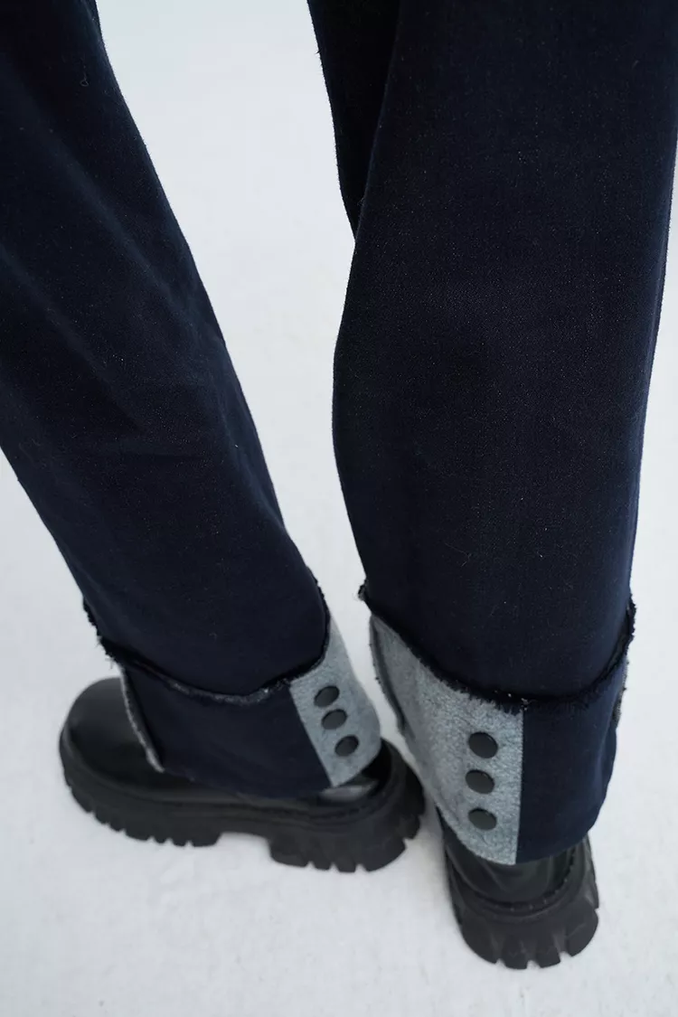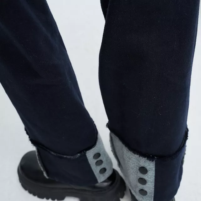 What sets these jeans apart is their unique outward-facing design and patch detailing. The bold yet subtle patches give them a handcrafted, retro feel that stands out without looking overdone. The rich dark wash adds a vintage edge, making them easy to pair with almost anything in your closet. Their regular fit and mid-rise waist offer a natural, comfortable feel that works for many body types. Made from a carefully balanced blend of cotton, polyester, and viscose, the fabric feels soft on the skin while staying durable enough for everyday wear.
