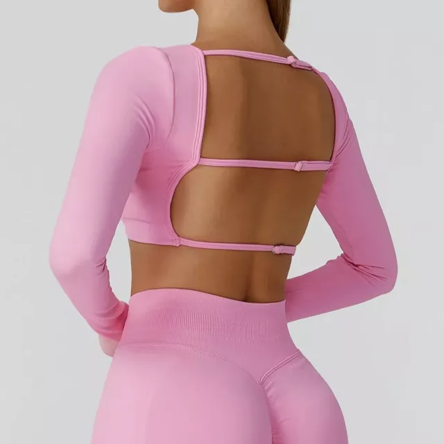 Women’s Seamless Long Sleeve Yoga Top – Quick-Dry Backless Fitness Shirt