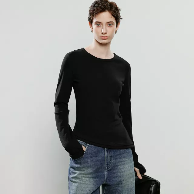 This stylish winter tee features a striking irregular asymmetric hem that instantly stands out while keeping your look clean and refined. The soft knit fabric feels cozy against the skin, making it ideal for long hours whether you’re at the office or enjoying a relaxed evening out. Designed in a solid color with a classic O-neck and full-length sleeves, it blends seamlessly with blazers, cardigans, or high-waist trousers.
