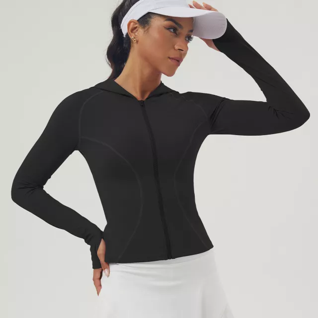 Whether you’re chasing the sunrise on an early morning jog or perfecting your poses in yoga class, this women’s slim fit outdoor running hoodie is designed to keep up with you. Crafted from a high-performance blend of nylon and spandex, it offers the perfect balance of stretch, comfort, and durability. The sleek solid-color design and flattering slim fit create a look that’s as stylish as it is functional, making it your new go-to for all active adventures.