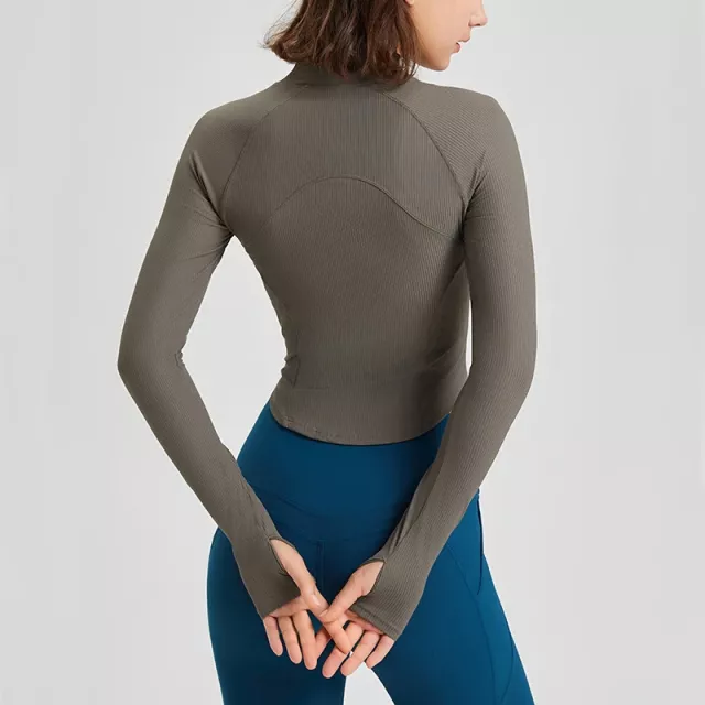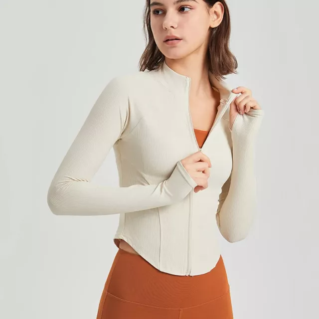 Women’s Slim Fit Zipper Running Jacket – Long Sleeve Yoga & Gym Sportswear