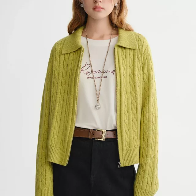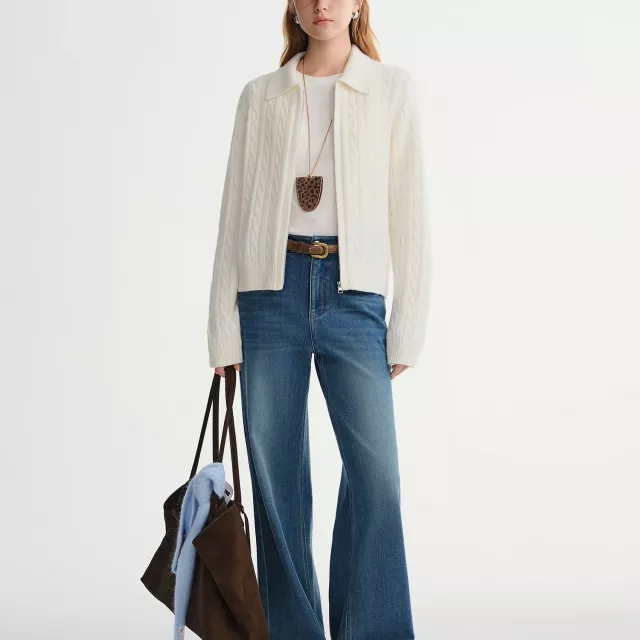 Women’s Slim Zipper Knit Sweater Cardigan with Turn-Down Collar