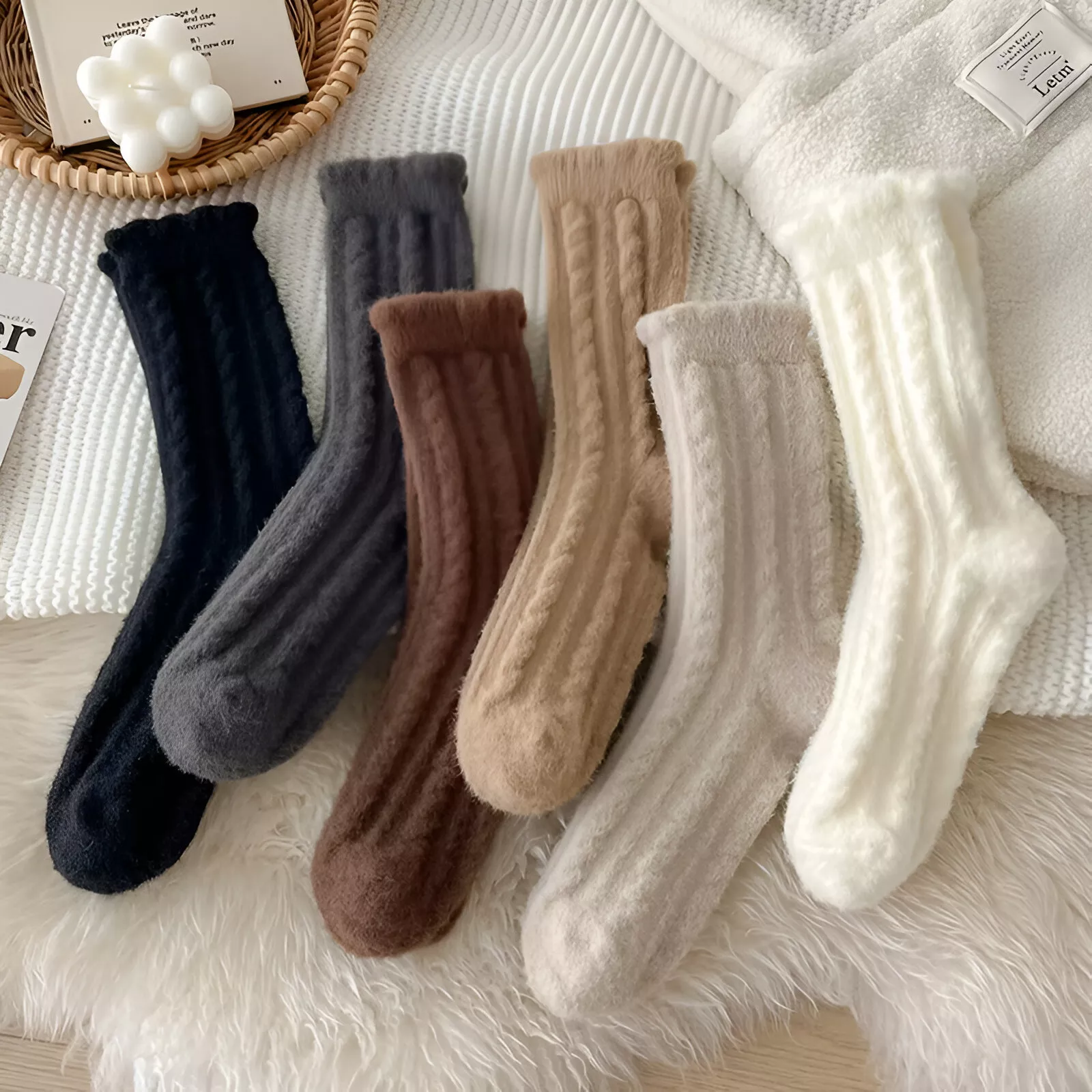 Women’s Thick Fuzzy Winter Socks – Warm Braided Floor & Sleeping Socks