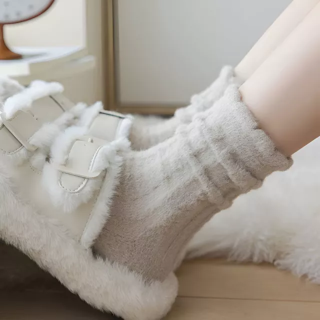 Slip your feet into pure comfort with these thick, fluffy winter socks designed to keep you warm, relaxed, and cozy on even the coldest days. Made with soft Australian wool blend and a plush velvet-like texture, these socks wrap your feet in gentle warmth while staying breathable and comfortable for all-day wear.