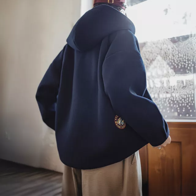 This coat stands out because it blends structure with softness. The hood holds its shape, protecting you from cold winds, while the loose fit gives you freedom to move and layer underneath. The wool-style texture adds a premium, cozy feel, and the single-breasted front makes it easy to wear open or closed depending on your style.