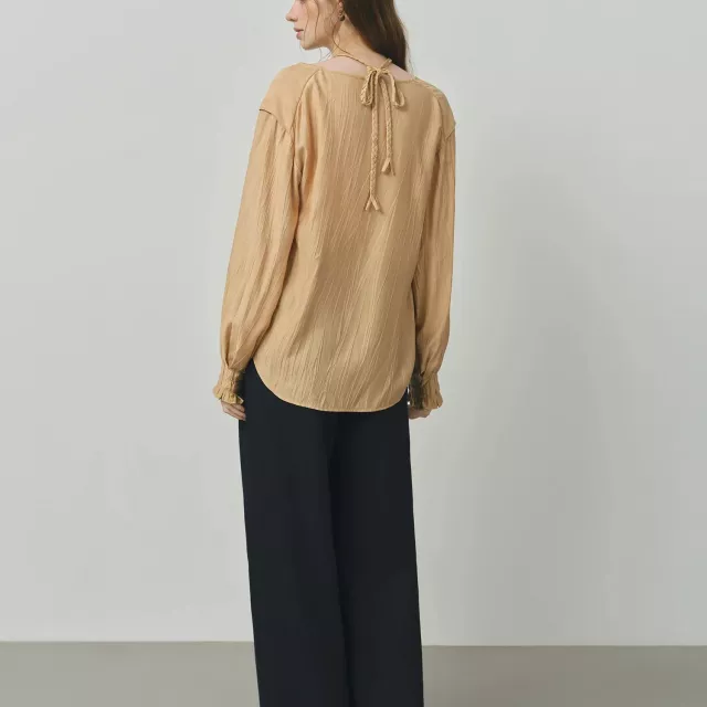 Designed with comfort and style in mind, this textured top is perfect for women who want both elegance and ease. Whether you’re heading to brunch with friends or enjoying a day out shopping, this versatile piece will have you feeling confident and stylish. The soft, breathable fabric ensures comfort all day long, while the lace-up decoration offers an unexpected twist that makes this top stand out in a crowd. Pair it with your favorite jeans, skirts, or trousers for a look that’s both fashionable and practical.