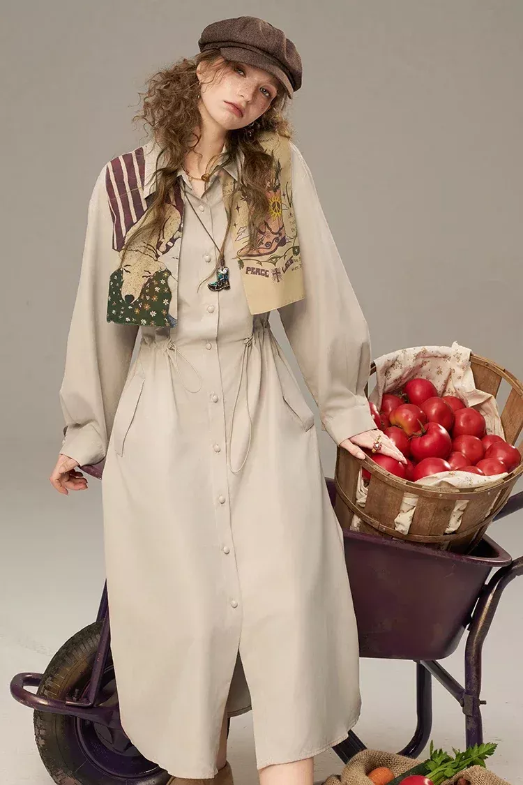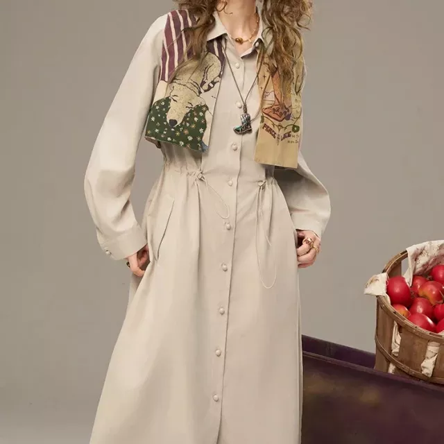 Step into effortless elegance with this vintage-inspired printed maxi dress designed to flatter your shape while keeping you comfortable all day. Featuring a classic shawl-style turn-down collar and eye-catching retro print, this dress blends old-school charm with modern wearability. The multiple front buttons add a refined touch, making it easy to style for both casual days and dressed-up evenings.
