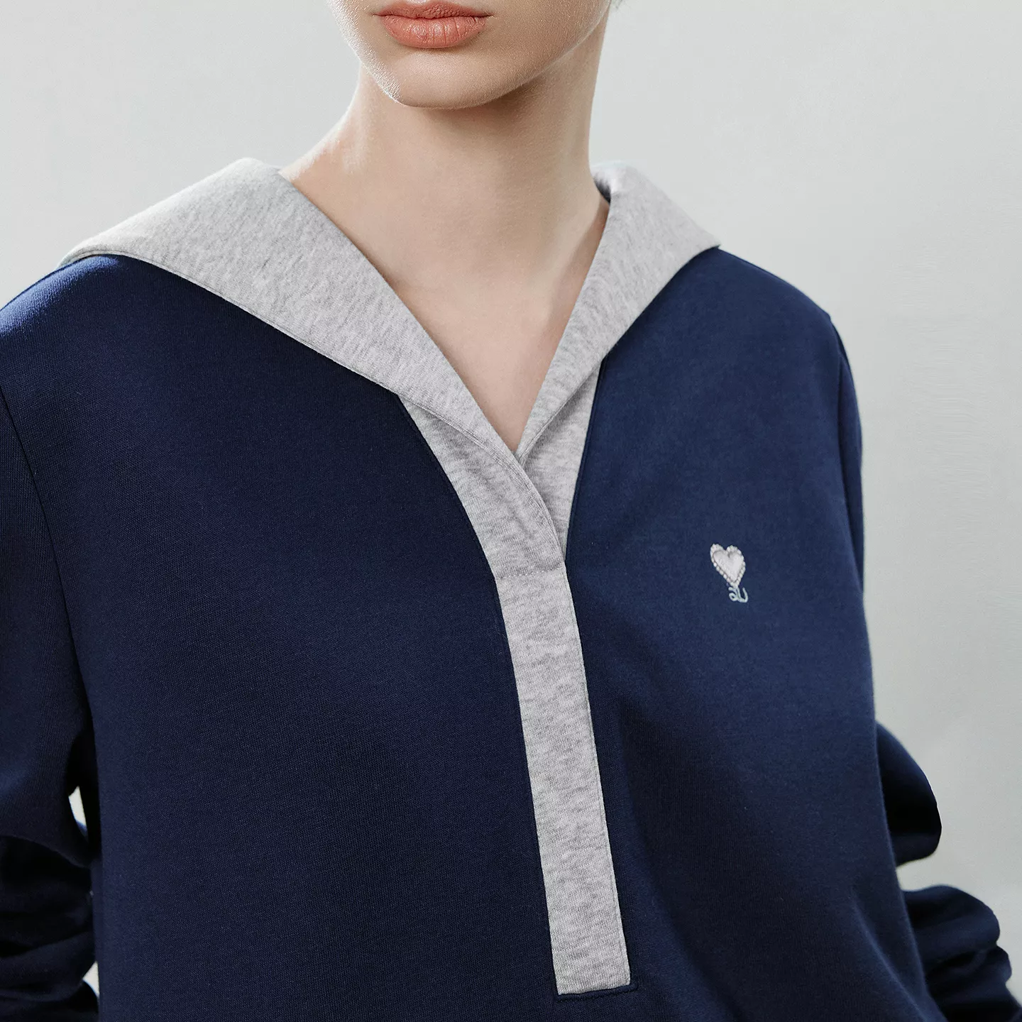 Crafted from a high-quality blend of 100% cotton and polyester, the fabric is soft against the skin yet durable enough to withstand daily wear. The sailor collar adds a sophisticated touch, while the embroidered detailing enhances the overall aesthetic with a subtle, classic charm. The asymmetric design of the dress creates a flattering silhouette, while the loose fit ensures maximum comfort, allowing you to move freely without restriction.