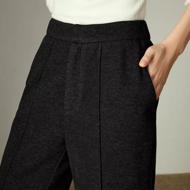 These pants are crafted from a blend of microfiber, wool, polyester, and acetate, providing a soft, cozy feel against your skin. The medium-stretch knit fabric ensures a comfortable fit that moves with you, while the solid pattern makes them versatile for pairing with a variety of tops and outerwear. The zipper fly closure and functional pockets add practicality without compromising on style.