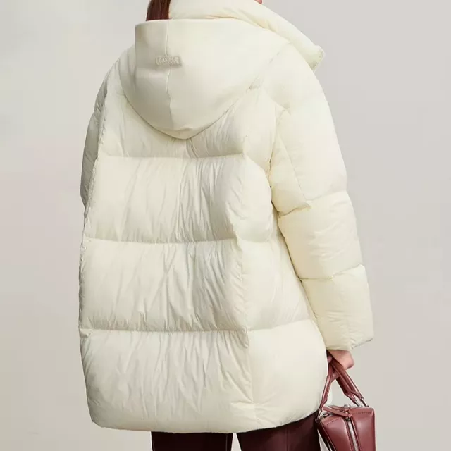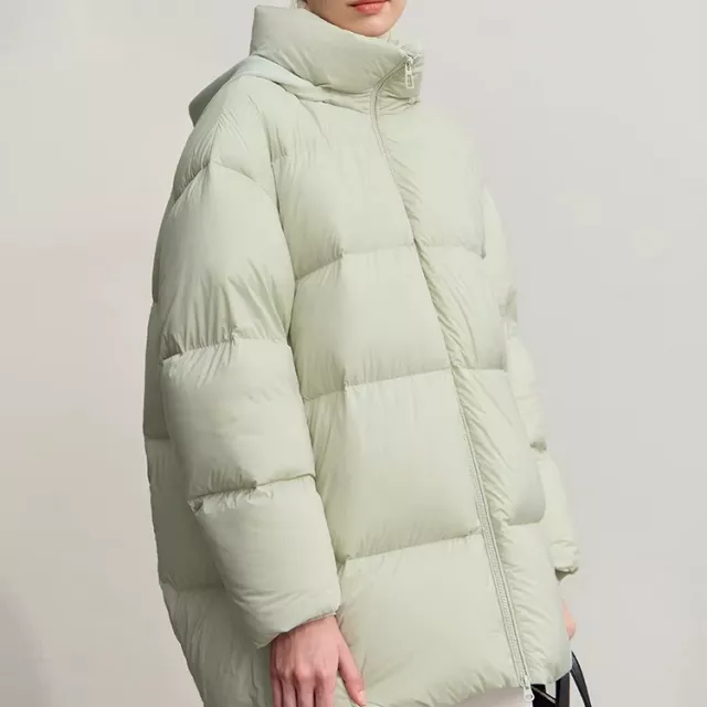 Built to handle harsh winter weather, this coat includes all the elements you need to stay protected. The full-length zipper allows easy layering, while the long sleeves and durable woven fabric shield you from wind and cold. With 85 percent down content and a lightweight 100–150 g fill weight, it offers exceptional warmth while staying easy to wear throughout the day. The wide-waisted design creates a flattering shape that suits everyday office wear, weekend outings, and travel during the chill of winter.