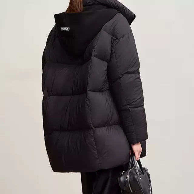 Stay warm, confident, and effortlessly stylish all winter long with this premium down coat. Designed for women who value both comfort and sophistication, it blends a sleek solid-color look with a cozy wide-waisted silhouette. This winter essential features a thick woven exterior and soft white duck down filling, offering excellent insulation without the bulk. Its long length of over 26 inches provides extra coverage, while the removable hood gives you the freedom to switch between polished and casual looks with ease.