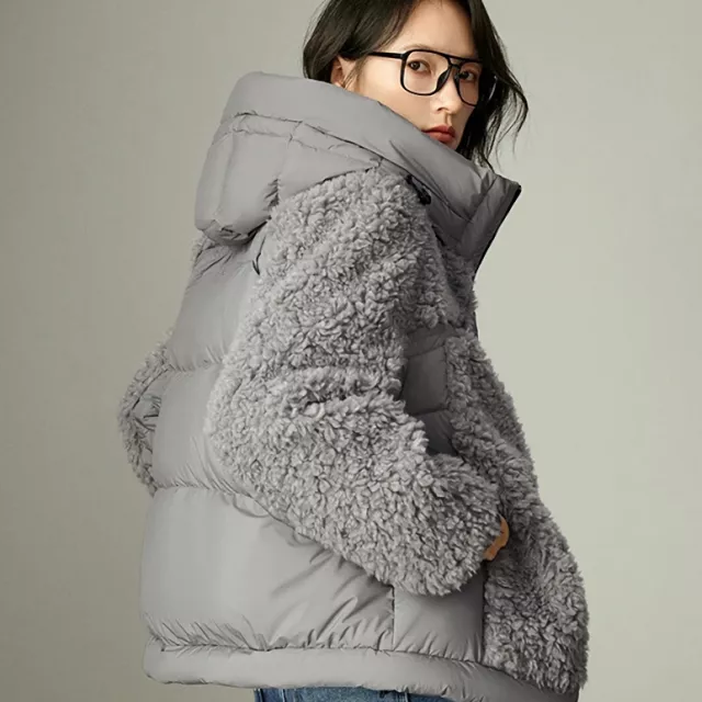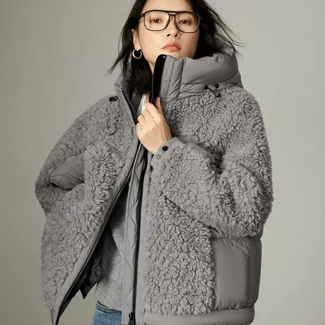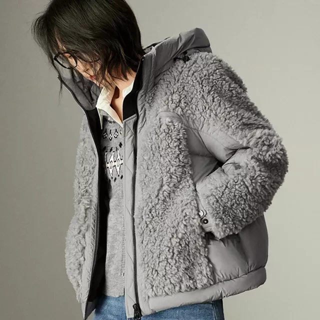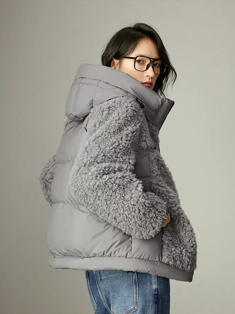Women’s Winter Hooded Down Plush Jacket – Warm & Office Chic