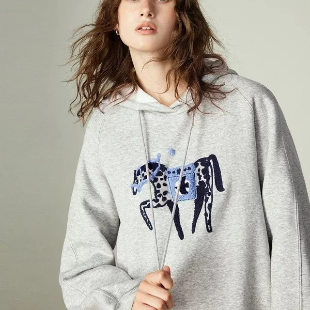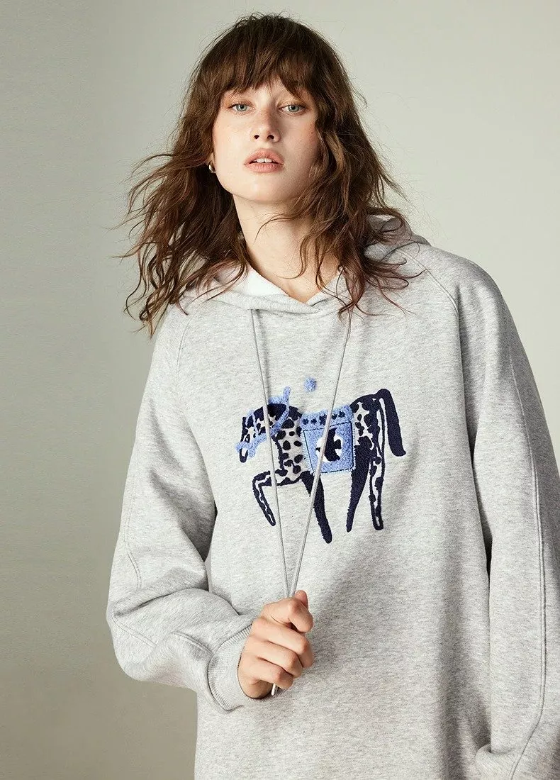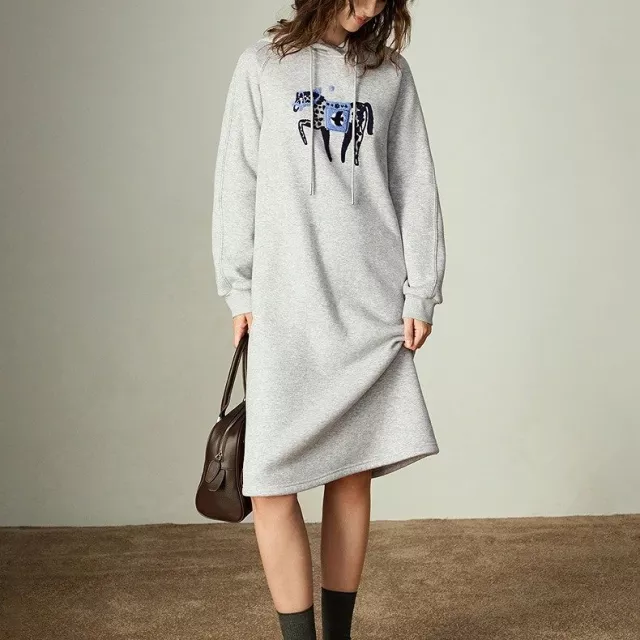 What sets this sweatshirt dress apart is its perfect balance of comfort, warmth, and personality. The embroidered horse detail adds a soft artistic touch, while the fleece-lined interior makes it a true winter essential. The loose fit flatters different body shapes and allows all-day comfort without feeling tight or restrictive.