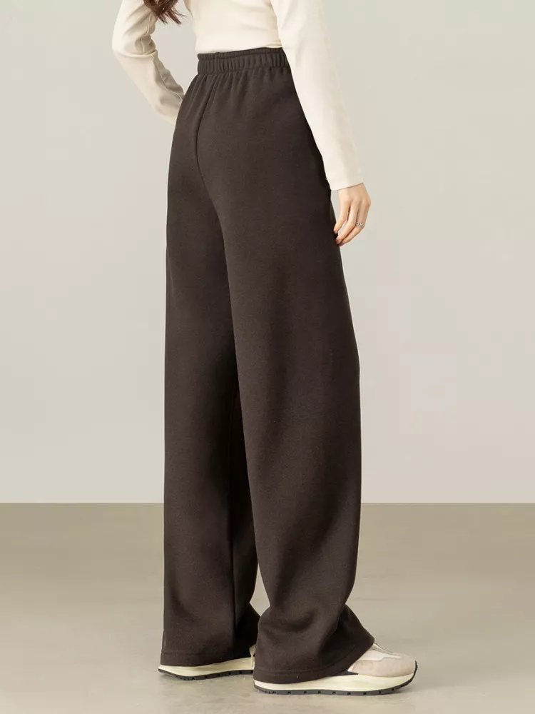 These winter pants are crafted using a premium blended fabric that includes polyester, viscose, spandex, acetate, and wool. The result is a soft, warm, and slightly stretchy material that feels smooth against the skin. They feature a mid-rise elastic waistband for easy wear, a straight-leg cut for a flattering silhouette, and a full-length design that keeps your legs warm even in cold weather.