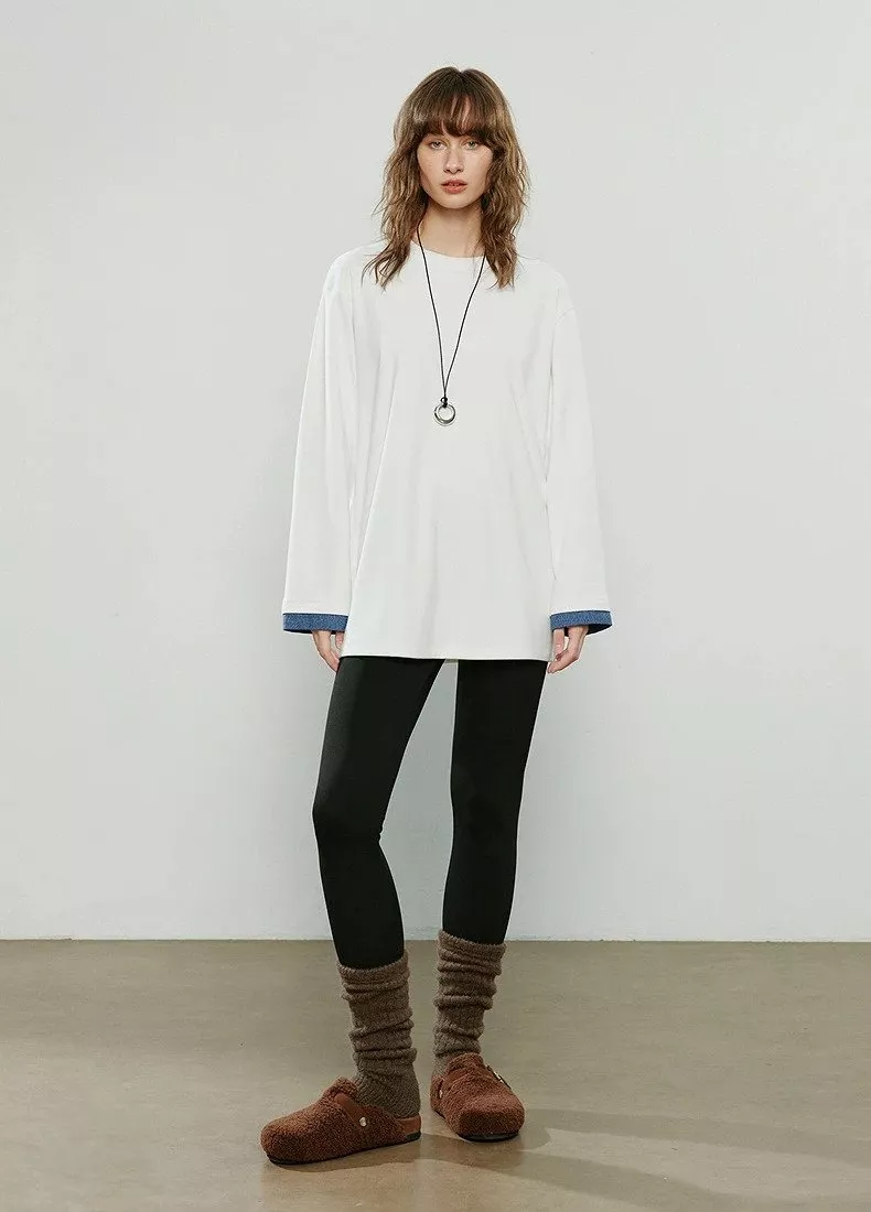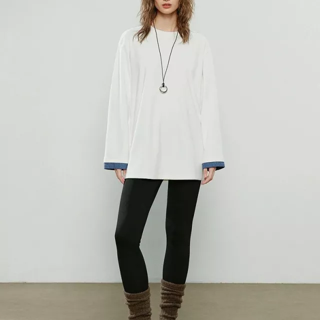 This winter T-shirt is more than just another top – it’s a statement piece. The spliced denim design adds a modern twist to a classic style, making it stand out in the best way. The combination of soft polyester and spandex ensures comfort that lasts all day, while the high stretch gives you the freedom to move. The mid-length cut and regular fit make it easy to pair with virtually anything in your wardrobe, from skirts to pants, making it a go-to item for any occasion.