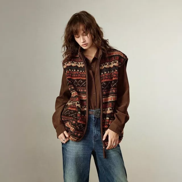 This vest stands out with its combination of Nordic charm and modern practicality. Unlike ordinary vests, its fleece lining provides superior warmth, while the loose fit makes it easy to layer over heavier winter clothing. Its geometric Fair Isle design adds a touch of elegance, making it suitable for office settings, casual outings, or cozy winter walks. You get both style and function in one chic outerwear piece.