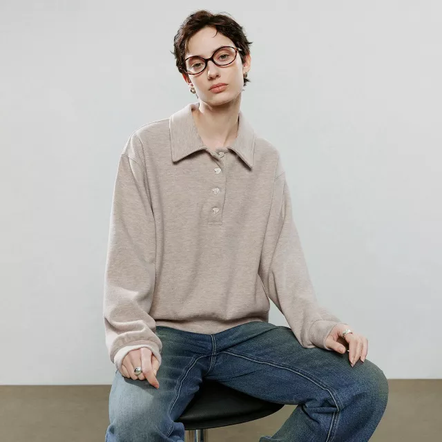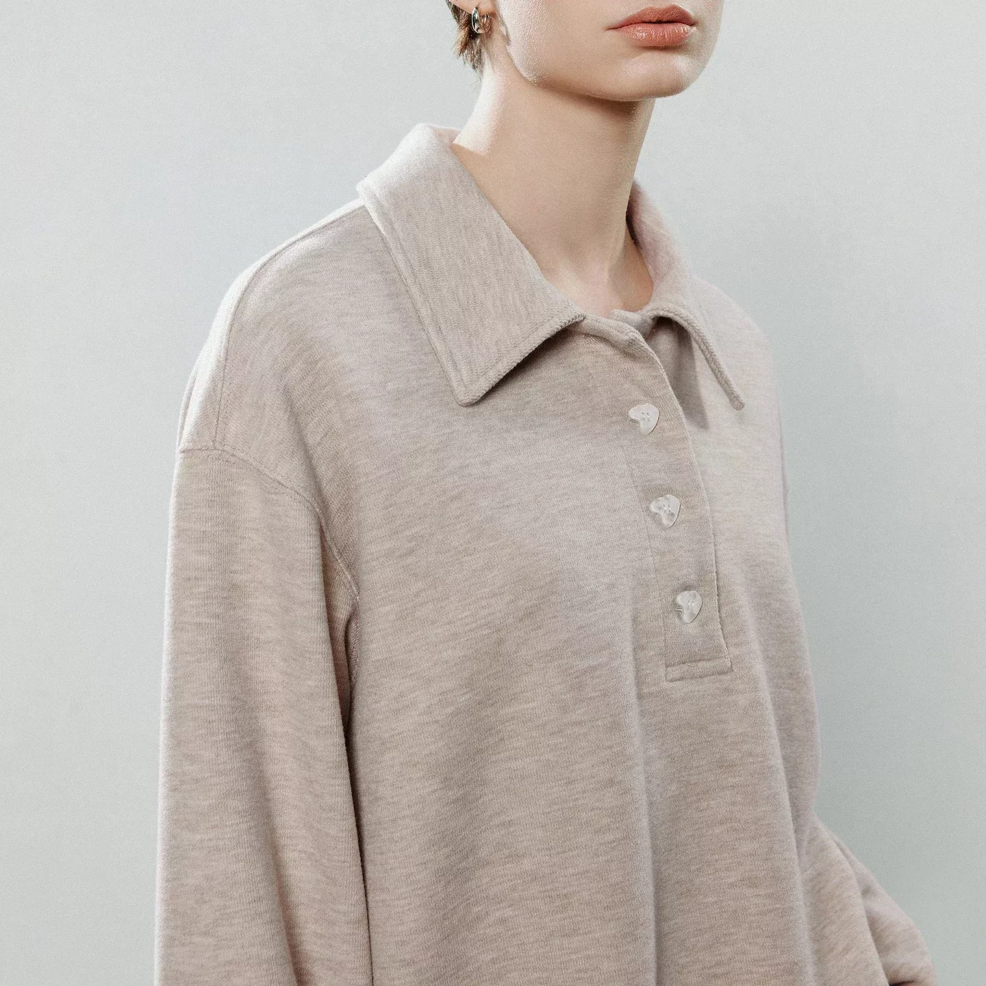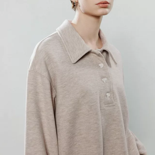 Unlike basic winter tops, this design brings charm and structure together. The turn-down polo collar adds a refined touch, while the drop sleeves and loose fit create an effortless, laid-back vibe. The heart-shaped buttons are a subtle detail, but they make a memorable statement, adding a hint of sweetness without looking overly cute or childish. With its medium-weight knit fabric around 120–220 g/m², it keeps you warm without feeling heavy or bulky.
