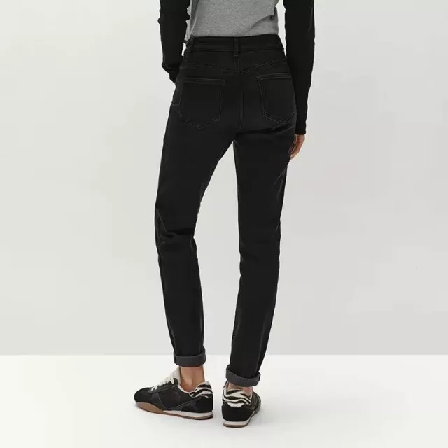 These jeans bring together the best of comfort and design. Made from soft cotton elastic denim, they offer a smooth fit that hugs your curves without feeling tight. A warm fleece interior protects you from chilly days, while the mid-rise waist delivers a balanced, slimming silhouette. Practical pockets and a clean slim-jeans cut complete the look, making them ideal for casual outings, workdays, or relaxed weekend wear.