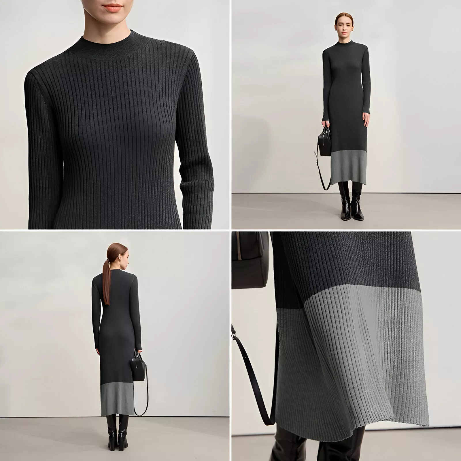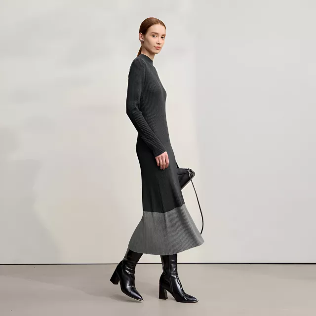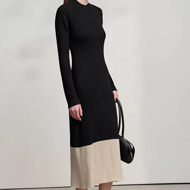 Step into winter with confidence in this beautifully designed slim knit midi dress. Created for modern women who love comfort without sacrificing style, this piece blends soft knitted fabric with a flattering A-line silhouette. The semi-turtleneck adds a touch of sophistication while keeping you warm on chilly days. With its unique patchwork design and smooth texture, this dress brings effortless elegance to your seasonal wardrobe.