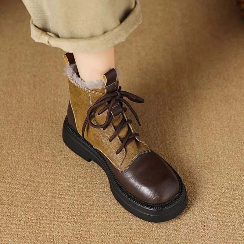 Step into winter with confidence and comfort in these warm split leather snow boots, thoughtfully designed to keep your feet snug on icy days. Made with a durable split-leather upper and insulated with a soft wool-blend interior, these boots offer a perfect balance between warmth, support, and everyday style. Their round-toe design and medium chunky heel provide stability, while the raised platform adds extra lift for an effortlessly flattering look.