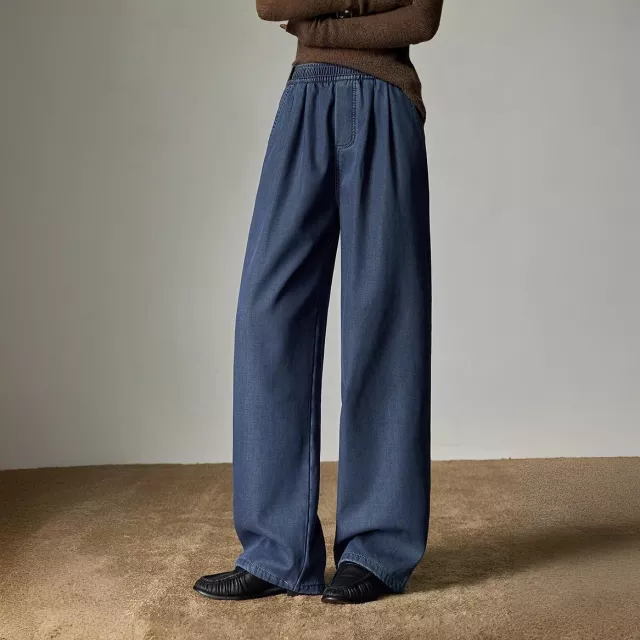 Step into warmth and style this winter with these women’s wide-leg casual pants. Designed with a soft fleece lining, these pants keep you cozy even on the chilliest days. The lyocell denim-like fabric offers a polished yet relaxed look, perfect for casual outings, weekend errands, or lounging at home. The elastic mid-rise waistband ensures a comfortable fit that moves with you, while the wide-leg design adds effortless elegance to your everyday wardrobe.