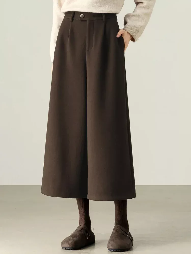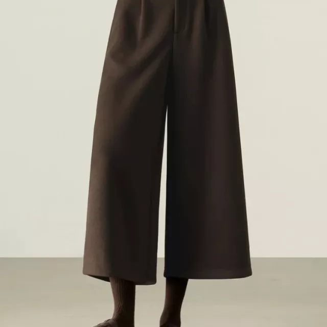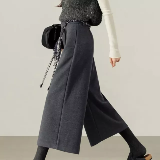 Unlike stiff winter trousers, this pair combines the structure of tailored bottoms with the softness of knitted fabric. The result? A piece that moves with you, keeps you warm, and still looks sharp enough for work or weekend outings. The mid-rise elastic waist sits comfortably without digging in, while the wide leg design flatters different body types.