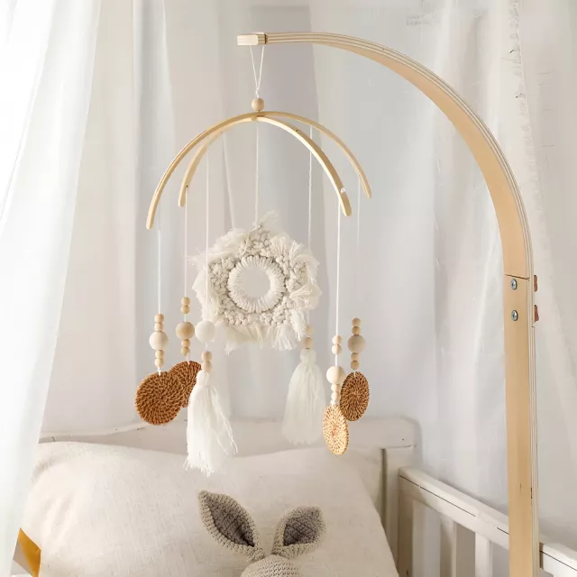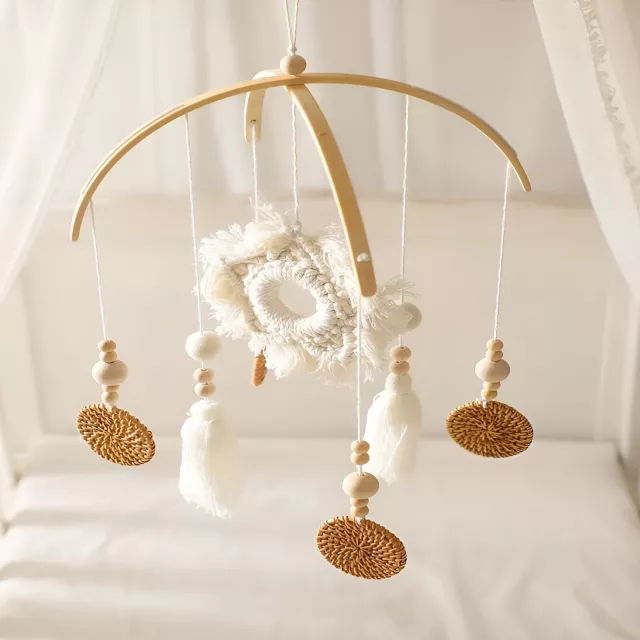 Bring warmth, comfort, and joy to your baby’s everyday moments with this charming wooden crib bell mobile. Add it to your nursery today and watch your little one delight in its gentle sounds and captivating movement.
