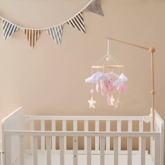 Wooden Baby Crib Mobile with Soft Felt Cartoon Bear Rattles – Musical Bed Bell Toy