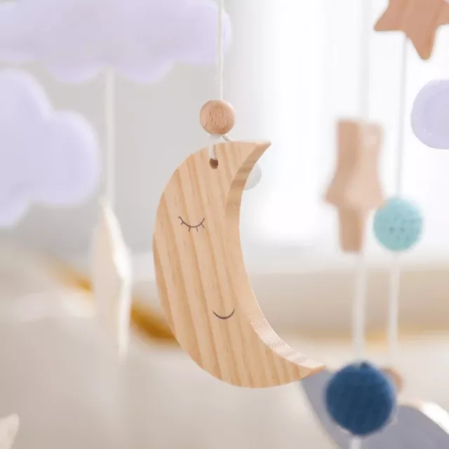 Transform your little one’s nursery into a dreamy space with this charming Wooden Crib Mobile Holder featuring a whimsical moon and shining stars. Crafted from high-quality, smooth wood, this mobile holder is both safe and stylish, making it the perfect addition to your baby’s bed. With its gentle musical tones and soft rattles, it creates a calming atmosphere that helps your newborn relax, drift to sleep, and enjoy visual stimulation.