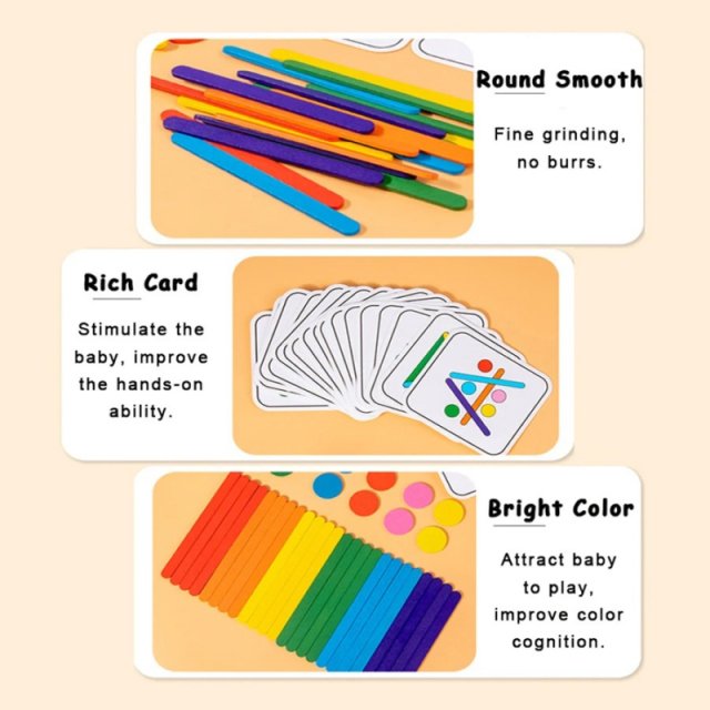 The colorful sticks are designed to mimic ice cream sticks, making the puzzle not only educational but also visually appealing. Children can arrange the sticks to match various patterns, solve puzzles, or create their own imaginative designs. It’s an engaging way to promote critical thinking while having fun at the same time. Compact and portable, this toy is ideal for both home play and travel.